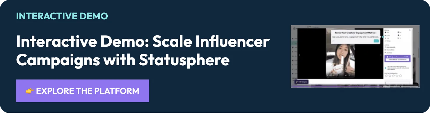 Want to see how our platform works? Contact one of our experts to see why Statusphere is the best influencer marketing management tool for scaling content with minimal legwork.